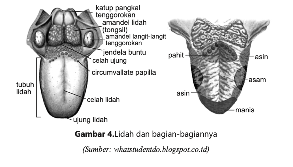 Lidah berfungsi mencerna makanan secara mekanik, Membantu proses mengunyah, Menelan, dan membedakan rasa. Pada permukaan lidah terdapat papila papila yang di dalam nya terdapat puting-puting pengecap rasa.(Mardalena, 2018).