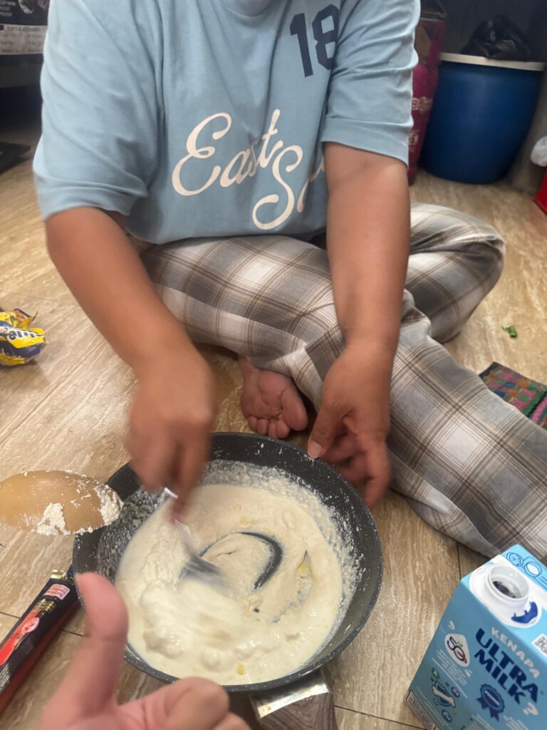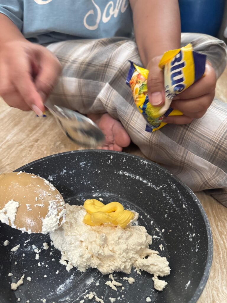 = Tantangan yang saya hadapi yaitu menentukan takaran yang tepat agar keju berhasil terbentuk dengan baik.