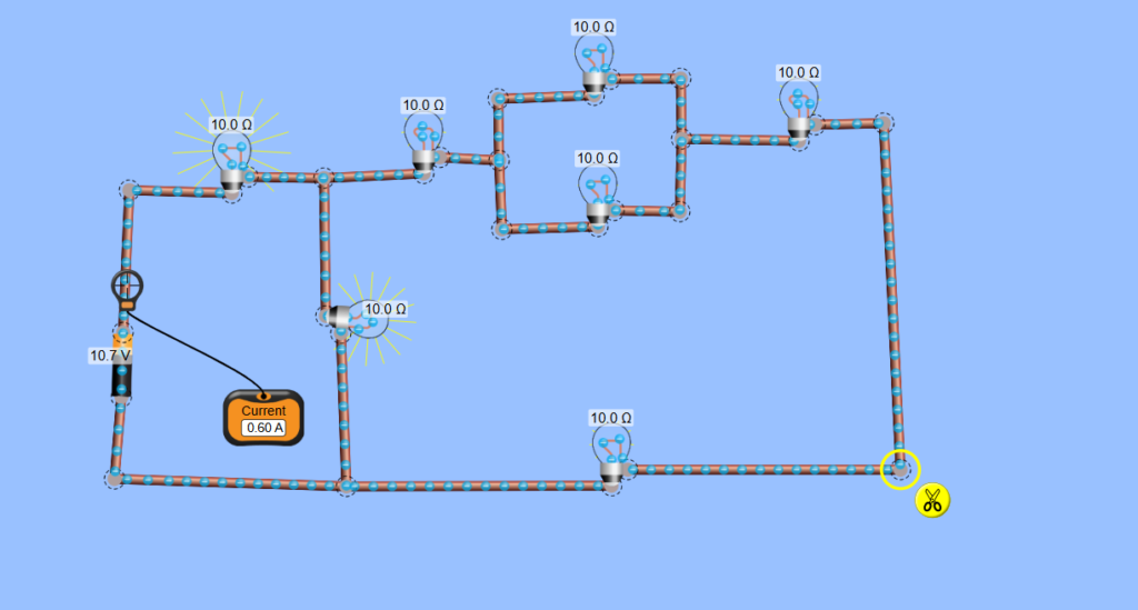 - Simulasikan di dalam Phet screenshoot hasilnya tambahkan hasil pengukuran menggunakan Amperemeter dekat baterai