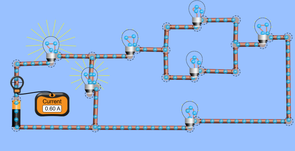 Rangkaian Seri Paralel & Campuran CampuranRangkaian campuran adalah rangkaian listrik yang terdiri dari gabungan rangkaian seri dan paralel dalam satu rangkaian.diket: R1= 2 ohm, R2= 2 ohm, R3= 4 ohm, R4= 2 ohm, R5= 4 ohm, R6= 4 ohm, R7= 4 ohm. V=10ditanya: arus?dijawab:paralel= R67= 2 ohmR567= 6 ohmR4567 = 8 ohmR24567= 10 ohmRtotal= R3 R24567 = 2.86 ohmRtotal= R1 + RP = 2+2.86 = 4.86I= v/r= 10/4.86 = 2.06 A SeriRangkaian seri adalah rangkaian yang komponennya disusun berderet dalam satu jalur, tanpa percabangan.diket: baterai 10 V dan dua lampu 4 Ω seri.di tanya: arus?di jawab: Rtotal=4Ω+4Ω=8ΩI= V/R = 10/8I= 1.25 A ParalelRangkaian pararel adalah rangkaian yang komponennya terhubung dalam cabangan, sehingga setiap komponen mendapat jalur sendiri dari sumber arus.diket: I=1.8 A V= 10di tanya: hambatan total?di jawab: Rtotal= 10/1.8 hambatan total= 5.56Ω ASAS ICCT Mr. Bayu : Diteliti lagi diket: R4 paralel R5, R2+ (r45)+R6+R7, (R24567) paralel (R3), (hasilnya) di seri R1 Rtotal = 1/10 + 1/10 = 5 ohm, 10+5+10+10= 35 ohm, 1/35 + 1/10= 9/70= 7.78 ohm, 10+7.78 = 17.78 ohmI=V/R I= 10.7/17.78 = 0.60 A diket: R4 ll R5, R3+R45+R6+R7+R8, R345678 ll R2, (Rhasilnya) + R1Rtotal: =1/10+1/10= 5 ohm, =10+5+10+10+10= 45 ohm, 1/45 + 1/10 = 8.18 ohm, =8.18 + 10 =18.18 ohmI=V/RI= 10/18.18 = 0.55 A diket: R5 ll R6, R2+R56+R7+R8+R9= Rs1 R3+R4=Rs2 Rs1 ll Rs2 R(hasilnya) + R1 Rtotal= 1/10+1/10= 5 ohm =10+5+5+5+10= 35 ohm =10+3.8= 13.8 ohm = 1/35+1/13.8 = 0.101 ohm =10+0.101 =10,101 I= V/R I= 14/10.101 = 1.40 A >> hasilnya R = 19.89 Ohm>> Arusnya I = 0.7 AmpereTeliti lagi (MR BAYU)