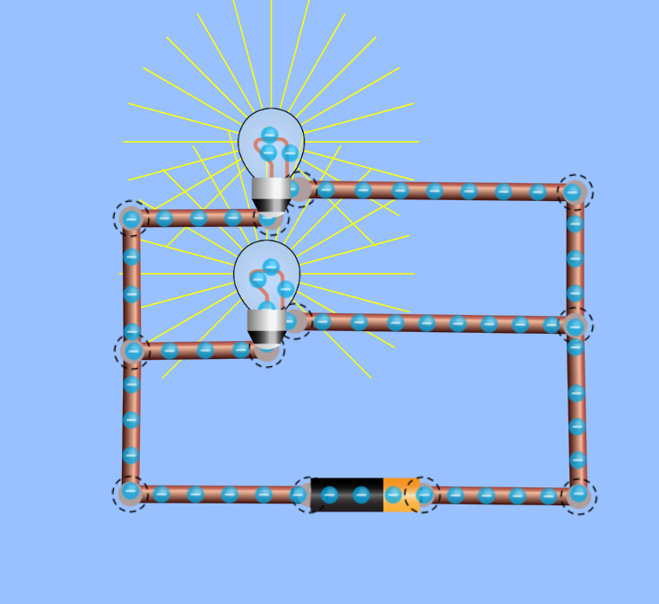 Arus (I): arus sama di semua komponen
