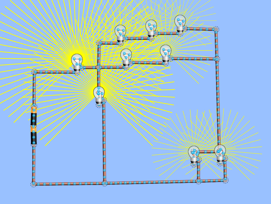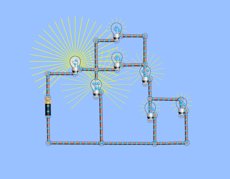 Rangkaian seri itu rangkaian yang semua komponennya tersambung dalam satu jalur, jadi kalau satu putus semuanya mati.