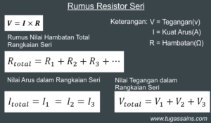 Rangkaian seri adalah susunan komponen listrik yang terhubung secara berurutan dalam satu jalur tunggal, sehingga arus listrik yang mengalir di setiap komponen nilainya sama. Ciri utamanya adalah jika salah satu komponen putus atau rusak, seluruh rangkaian akan berhenti berfungsi karena tidak ada jalur lain untuk arus mengalir. Contohnya adalah lampu hias atau lampu pada pohon natal model lama, di mana jika satu lampu padam, seluruh lampu lainnya akan ikut mati.
