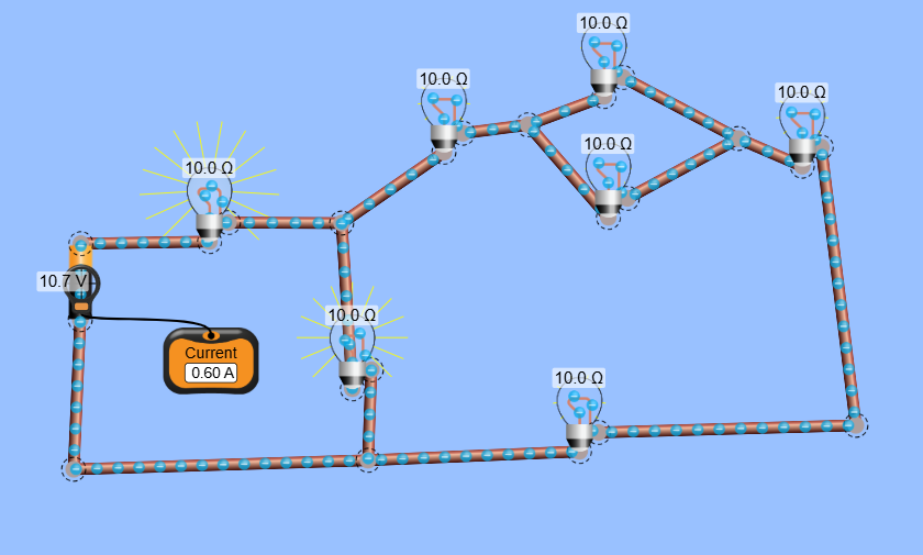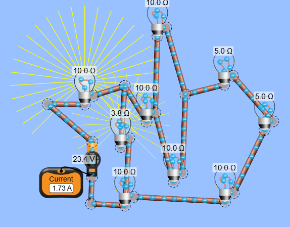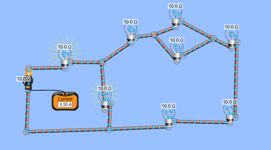 Ampere = Volt/Rtotal(Ω)= 10 ÷ 18,181818181818182 = 0,55A