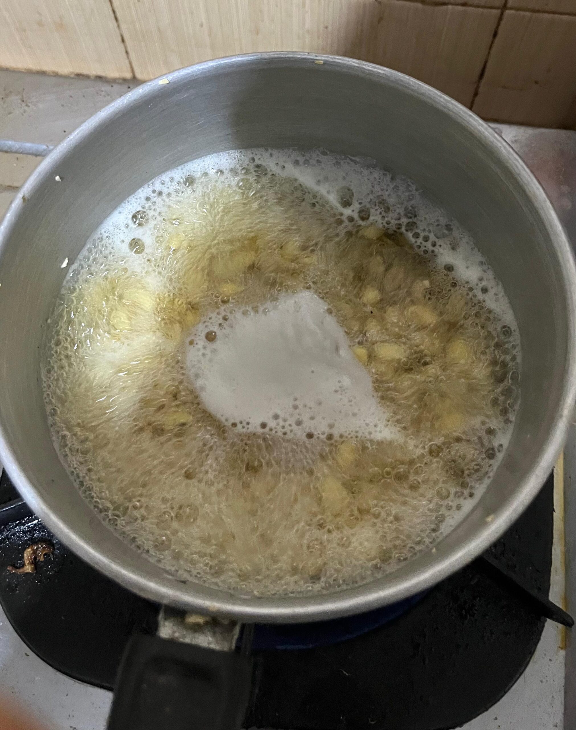 6. Kukus kedelai atau bahan baku tempe yang sudah dibersihkan