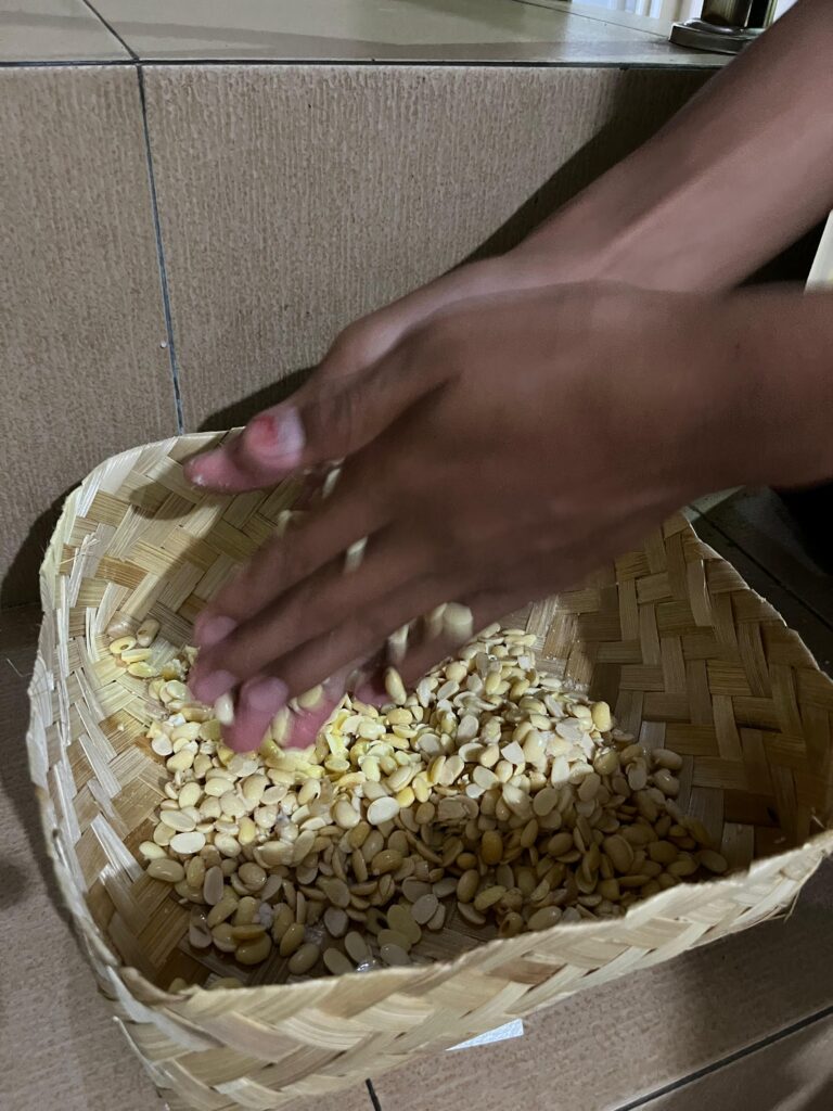 5. Kupas kulit ari kedelai atau bahan baku tempe yang sudah direndam